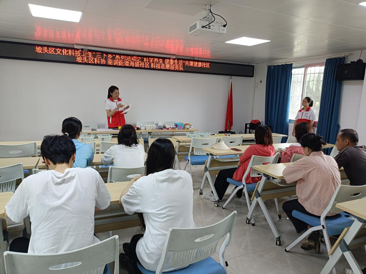 为深入贯彻落实惠民服务政策,推动优质资源下沉基层,5月16日上午,由坡头区科学技术协会主办,海盛社区、科技志愿者服务队承办的坡头区“文化科技卫生三下乡”主题活动在坡头区海盛社区党群服务中心开展。通过义诊、义剪、义务手机贴膜、生活科普实验等多样化服务,将健康关怀、文化滋养、科技体验送到居民家门口,吸引超100多名居民热情参与。